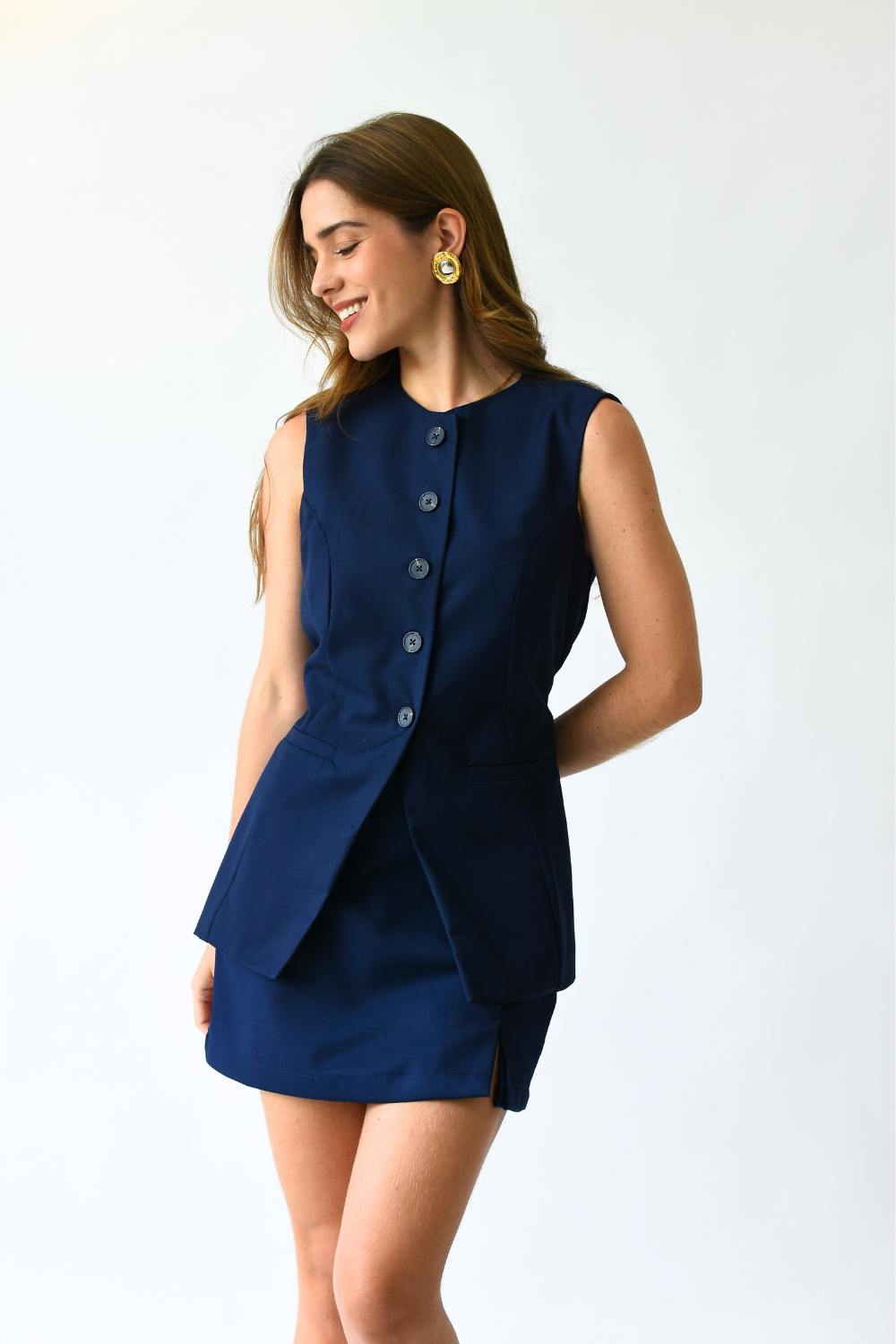 Colete Betina é a peça que vai fazer você se sentir a européia do pinterest! Confeccionado com acabamento e recortes de alfaiataria, completamente forrado, decote alto que pode ser usado aberto e botões foscos que trazem o diferencial para a peça. Combine com o nosso Short Betina para montar um look minimalista e elegante.